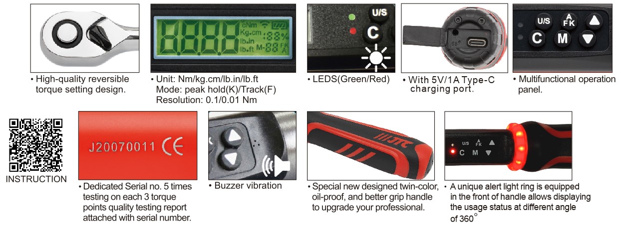 JTC-1573 RECHARGEABLE DIGITAL ANGLE TORQUE WRENCH