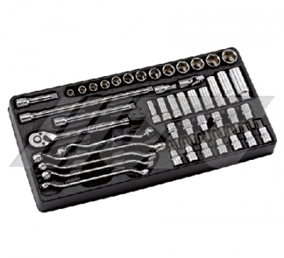 13pcs-3/8" Dr. 6PT socket: 8, 10, 11, 12, 13, 14,15, 16, 17, 18, 19, 21, 22 mm.